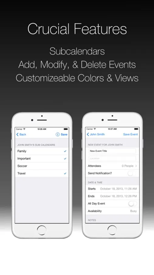 • Calendar overlay! View all calendars at once, just a single calendar, or create a custom view