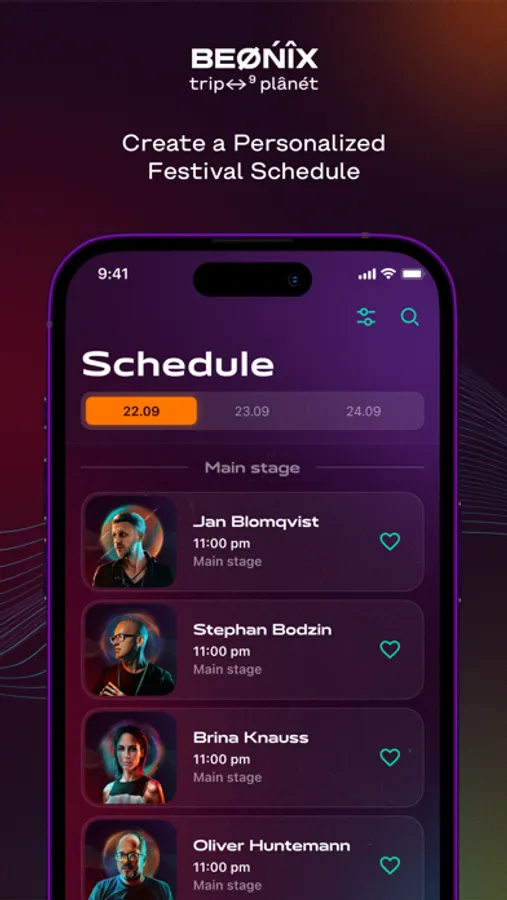 - create your personal schedule and don't miss your favorite artists, as you will be getting notifications about the start of their performances