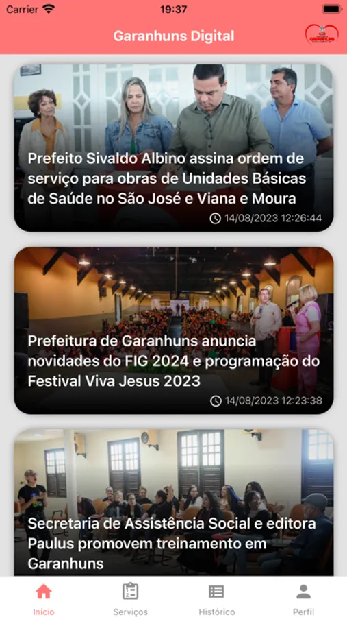 Por meio do aplicativo, você vai receber noticias, acessar informações sobre a cidade e realizar solicitações diversas diretamente para a prefeitura de Garanhuns!