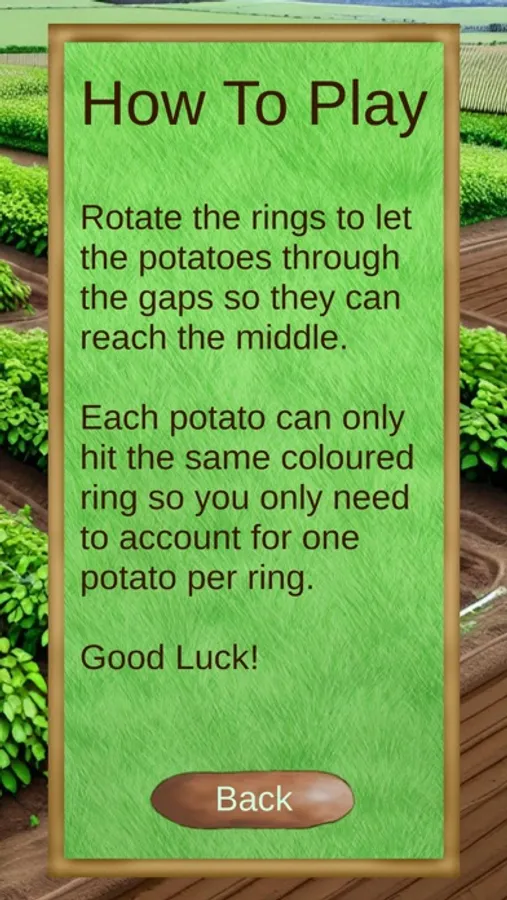 Use joysticks to rotate up to three rings to let through potatoes. Each ring will have to let through potatoes of the same colour.