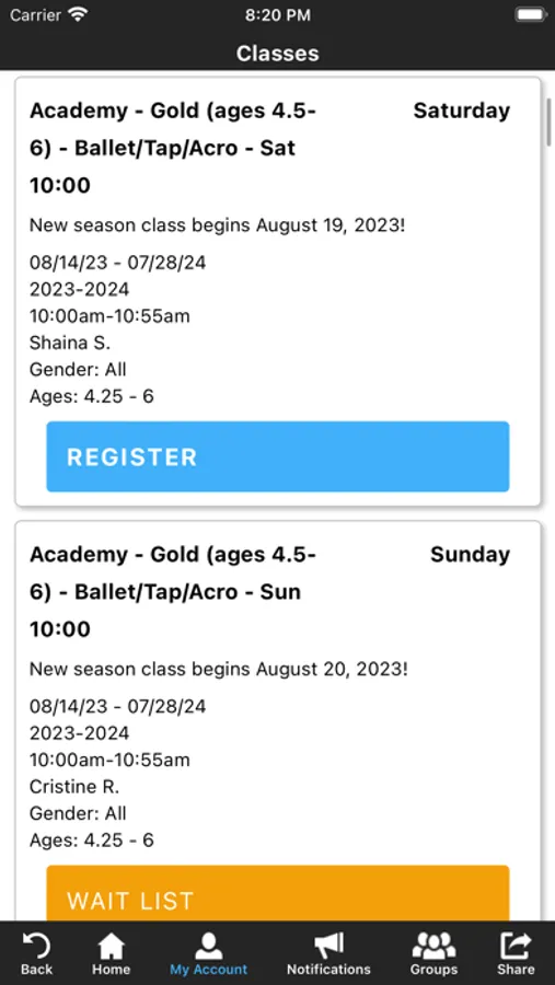 - Have a class in mind? Search by program, level, day, and time. You can register or even put yourself on a wait list.