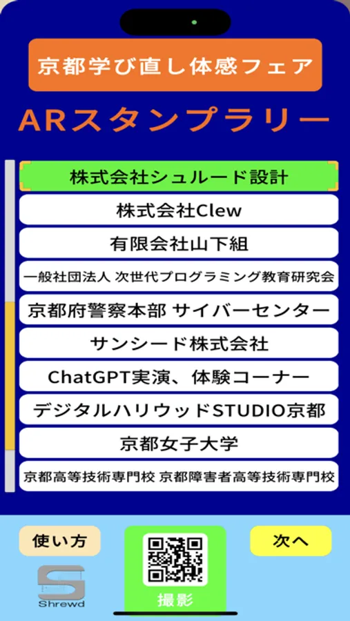 「京都学び直し体感フェア2023」会場内スタンプラリーアプリです。