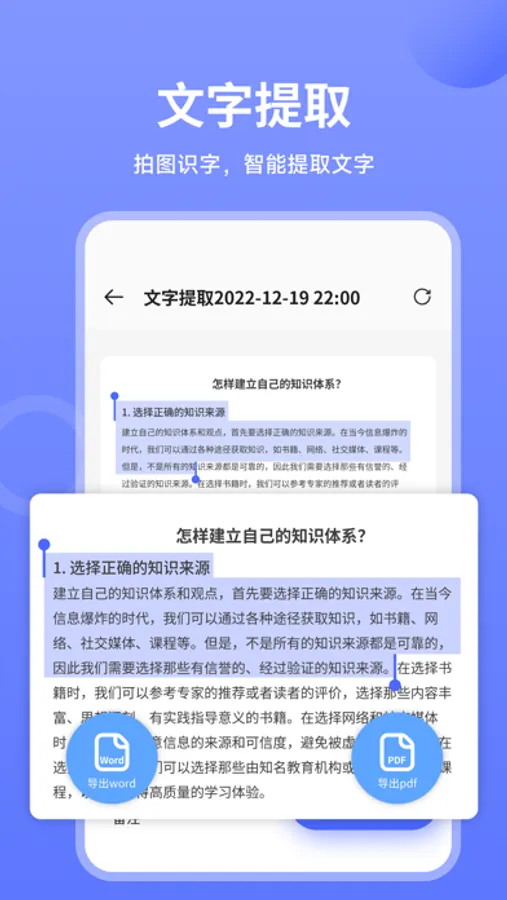 文字识别:采用OCR识别文字、将图片中的文字提取,可复制导出