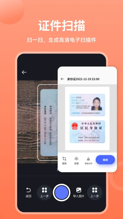 证件扫描:支持身份证、户口本、驾驶证等,1:1还原到A4纸,高效率工具