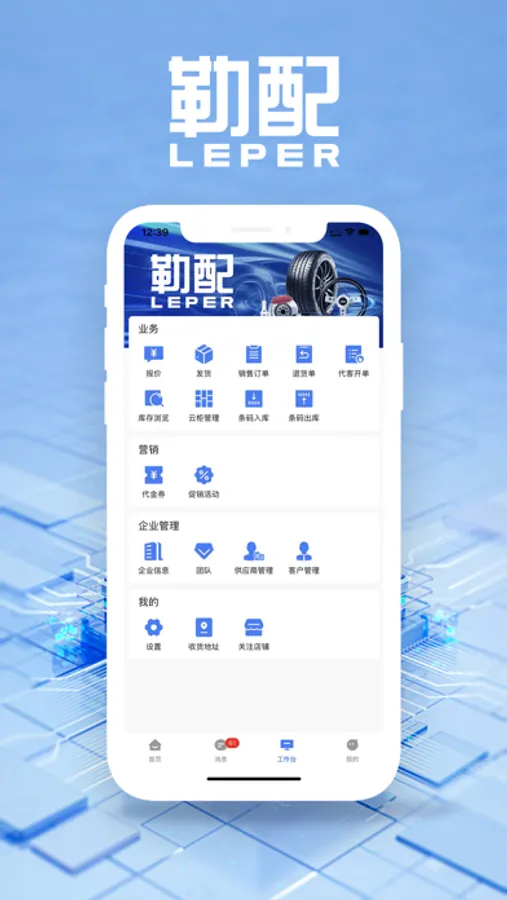 勒配,专注于为广大汽配经销商提供一个商品管理,订单管理,客户管理等App
