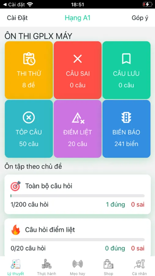 Đây là ứng dụng giúp bạn học lý thuyết để chuẩn bị cho kỳ thi sát hạch lý thuyết bằng lái xe máy A1, A2. Vui lòng thực hiện các bước theo hướng dẫn trong ứng dụng để tiết kiệm thời gian cũng như ghi nhớ đáp án trả lời các câu hỏi thi lý thuyết lái xe đạt kết quả thi tốt nhất và rút ngắn nhất thời gian ôn luyện một cách nhanh chóng nhất!