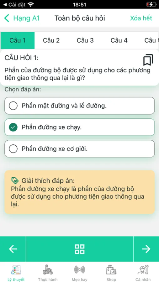 • Học và kiểm tra kết quả tức thì, giải thích kết quả chi tiết và mẹo làm bài cho từng câu hỏi, mẹo ghi nhớ đáp án từng câu hỏi