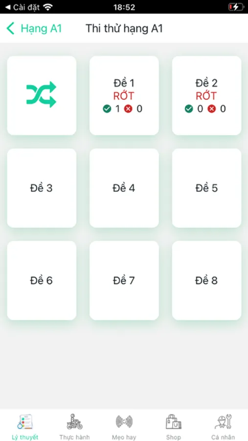 • Thi sát với thực tế, kiếm tra kết quả đậu hoặc rớt nhanh với bộ đề chính xác