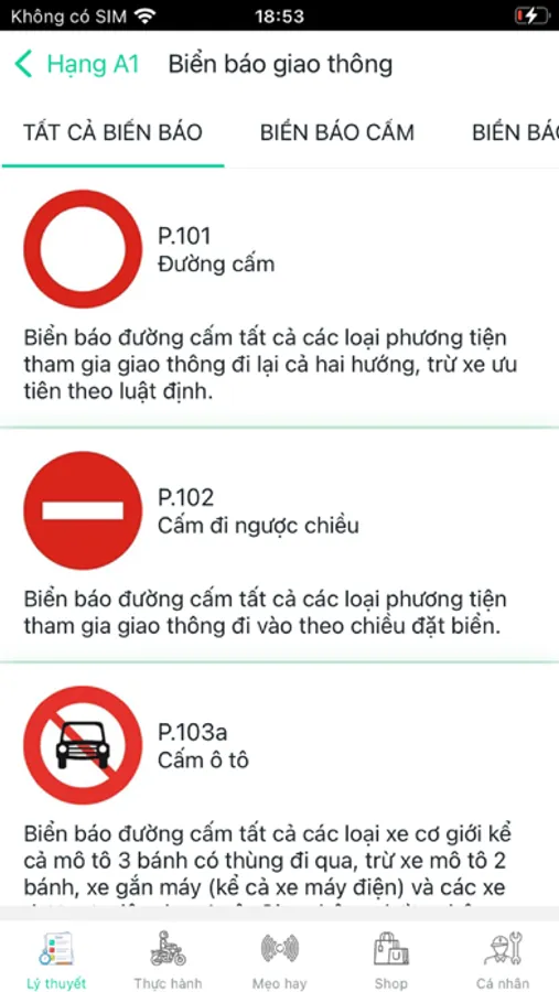 • Danh sách toàn bộ biển báo xuất hiện trong bộ câu hỏi giúp bạn tham khảo nhanh các biển báo trong trường hợp cần thiết.