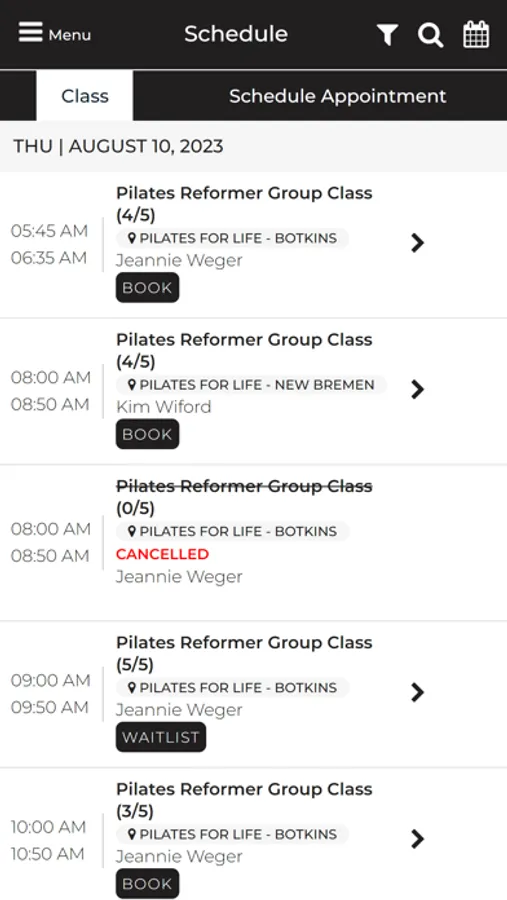 This app allows clients at Pilates For Life to schedule, reschedule and cancel their appointments independently through their phone.