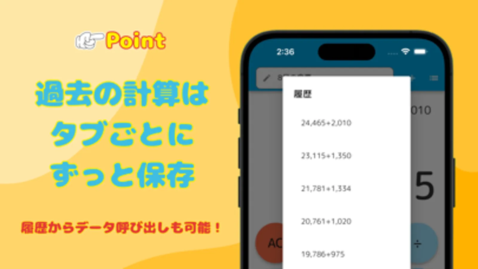 ・計算結果はタブごとに履歴が残せる