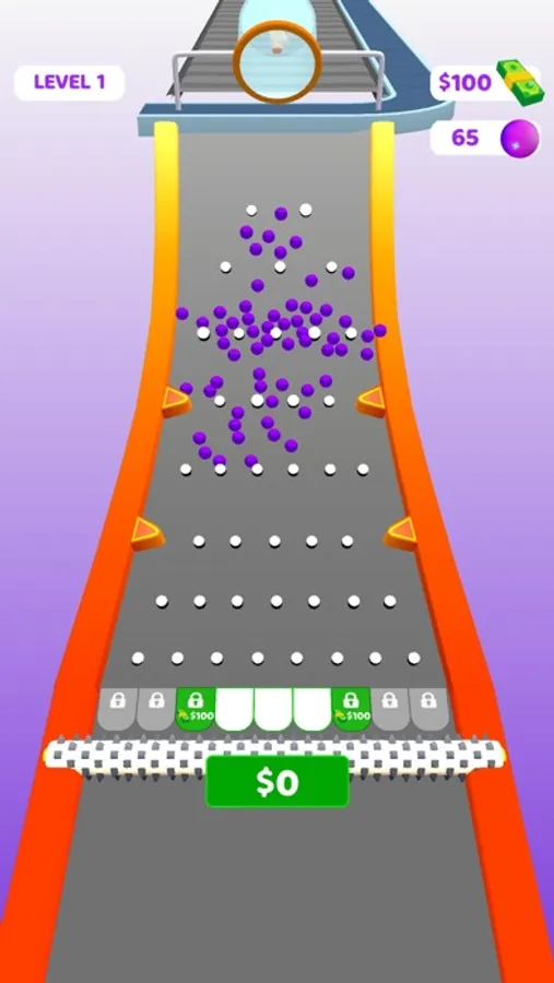 Collect balls into the glasses to be able to choose skill in milestone to get better! You will use those balls in level end part to gain money from them by using the bags and the grinder also! You can have better bags by merging them!