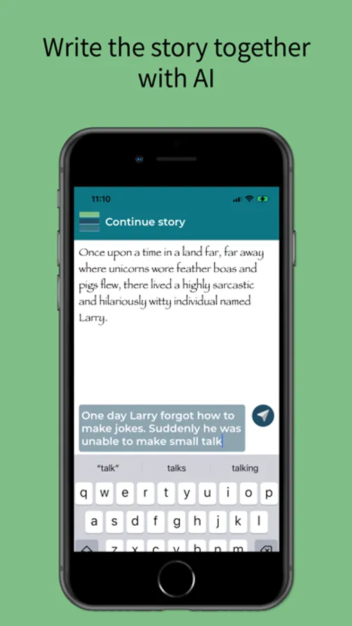 A story chain game with AI where AI creates an intro phrase for a story and user writes a response. Both steps are repeated until story is complete. AI will give a title to completed story and extract an image of the story