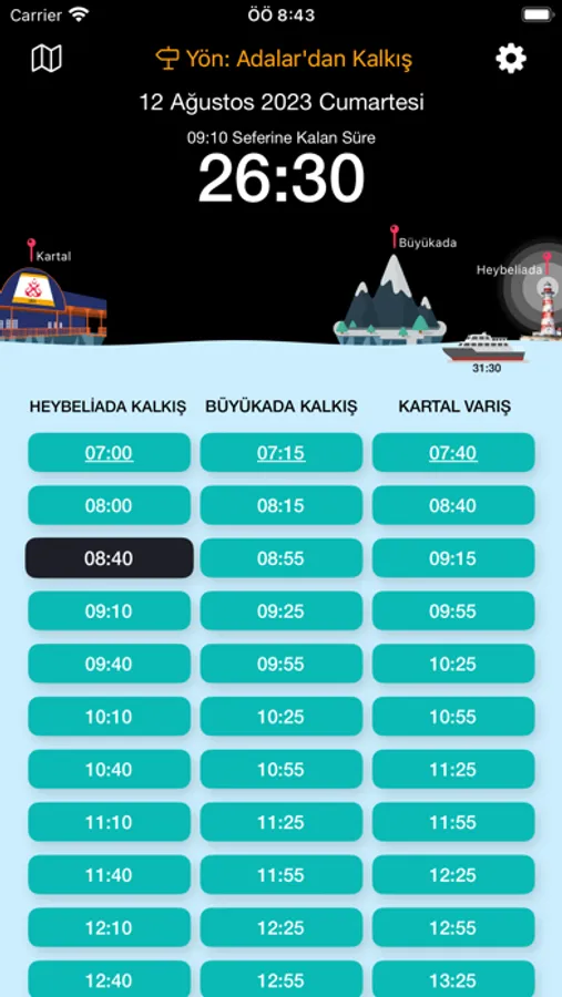 Kartal - Büyükada - Heybeliada sefer saatlerini interaktif animasyonlarla eğlenceli bir şekilde takip edin.