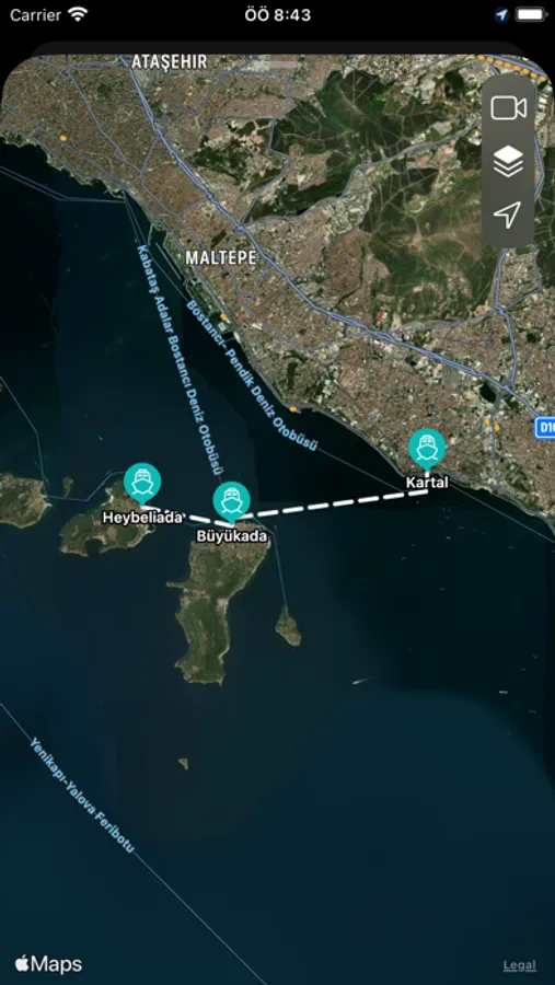 • Feribotların güzergahlarını kesik çizgilerle harita üzerinde görüntüleyebilme.