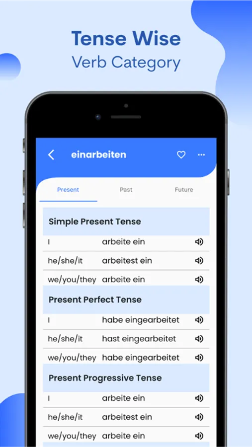 Conjugation Wizard: Simply enter any verb in its infinitive form, and watch as German verb conjugator instantly generates a complete conjugation chart for all tenses, moods, and persons. Say goodbye to confusing conjugation tables!