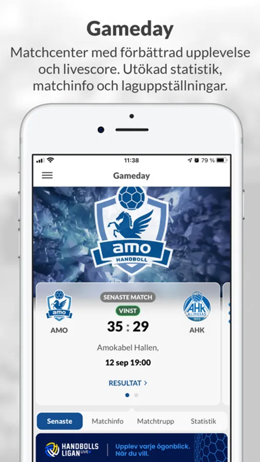 Gameday är Amo HKs digitala matchprogram. Här hittar du senaste nyheterna, spelarintervjuer, statistik från tidigare matcher och aktuella trupper. Du kan även följa matcherna via live score.