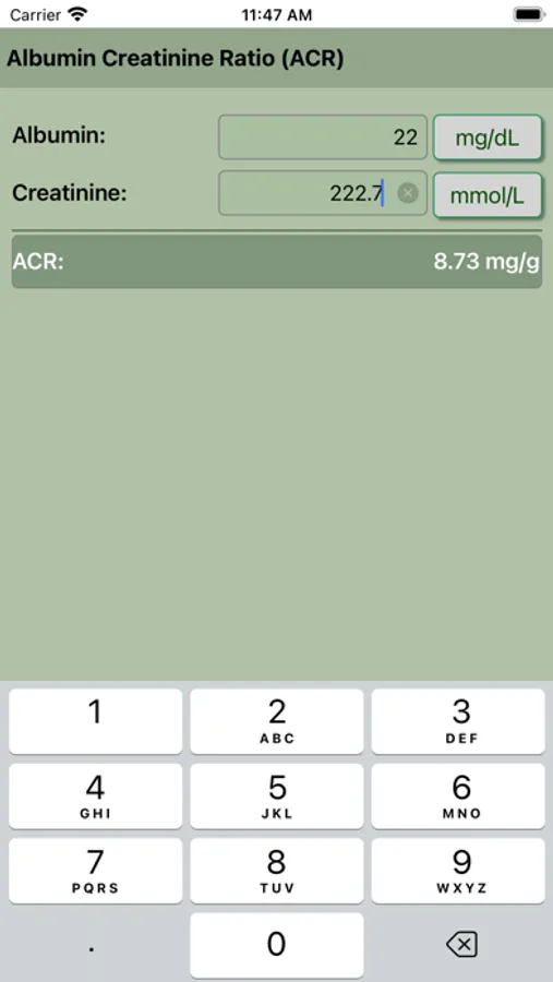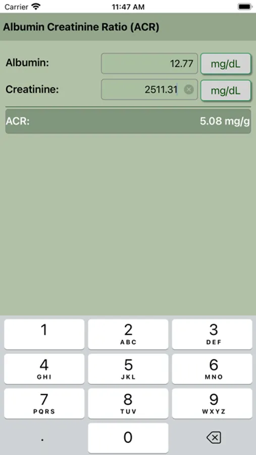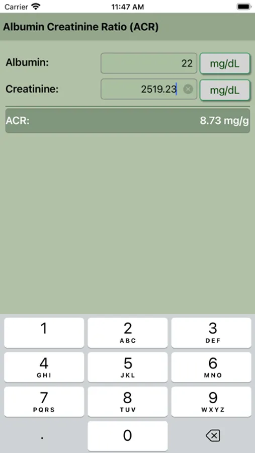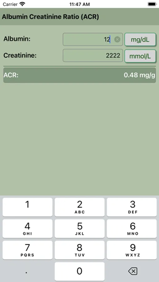 Albumin Creatinine Ratio Calculator (ACR).