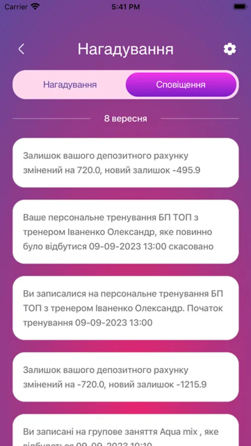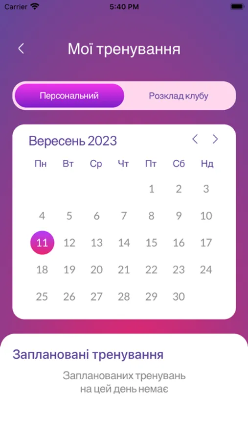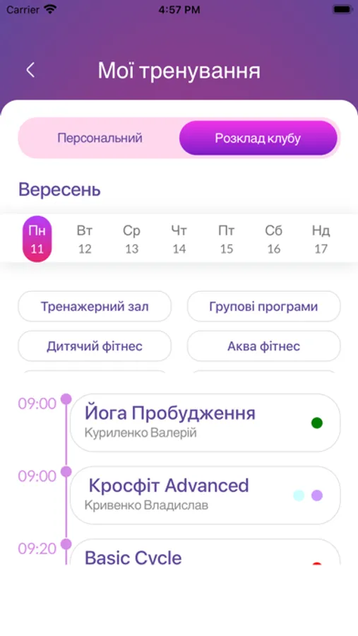 - самостійно записуватись на групові тренування, також при необхідності їх відміняти