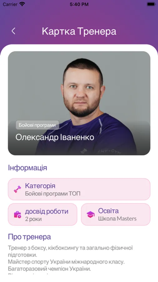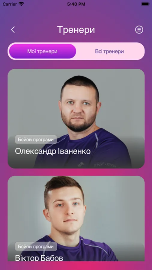 - дізнатися про всіх тренерів нашого клубу, їх здобутки та спеціалізацію