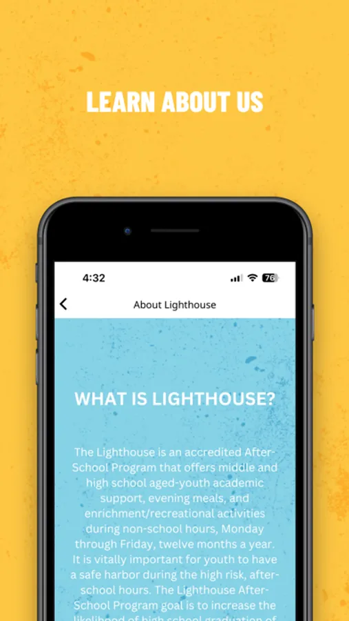 The Lighthouse is an accredited After-School Program that offers middle and high school aged-youth academic support, evening meals, and enrichment/recreational activities during non-school hours, Monday through Friday, twelve months a year. It is vitally important for youth to have a safe harbor during the high risk, after-school hours. The Lighthouse After-School Program goal is to increase the likelihood of high school graduation of middle and high school-aged youth by providing high quality programming.