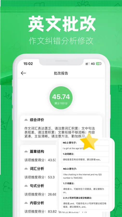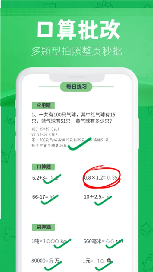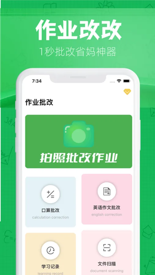 作业改改APP拍照快速检查口算结果,拍照或者文本输入批改英文作文,省时又高效率,让工作批改更便捷、更轻轻松松。手机拍照扫描材料纸质文档,自动生成pdf扫描件,一键分享至手机、电脑等设备端。