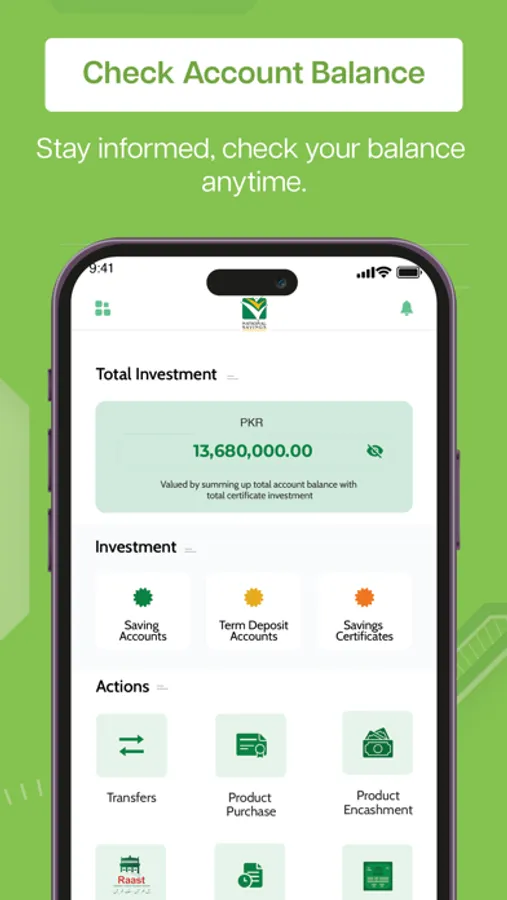 We are thrilled to introduce the latest version of the National Savings Digital App, reimagined with enhanced features that empower you to take control of your financial journey like never before. From managing your investments to exploring innovative digital financial products, we've got it all covered. Here's what's in store: