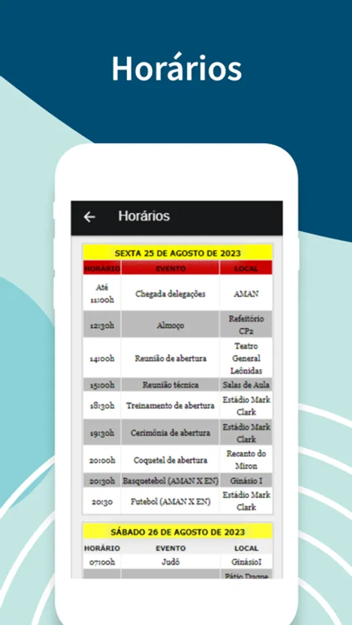 Bem-vindo à NAVAMAER 2023, um evento exclusivo que reúne as Escolas Militares das Forças Armadas do Brasil em uma demonstração épica de habilidade, estratégia e determinação. Esta competição anual está prestes a tomar o centro do palco, trazendo à tona o espírito militar, a camaradagem e a persistência. Com o intuito de facilitar a divulgação das informações sobre essa emocionante competição esse aplicativo foi criado. O aplicativo realizará a divulgação dos resultados, horários, informações e muito mais sobre a competição. Além disso, todas as fotos e vídeos estarão disponível!