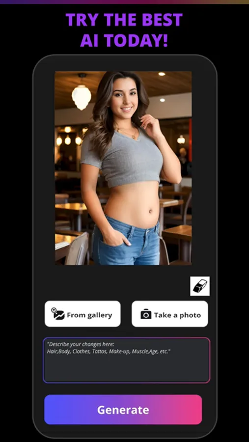Body Transformation: Sculpt your physique effortlessly using our advanced body transformation tools. Go from average to extraordinary by choosing between a chiseled six-pack, a fit silhouette, or an athletic build. BestShape AI's seamless technology ensures your transformation looks astonishingly real.