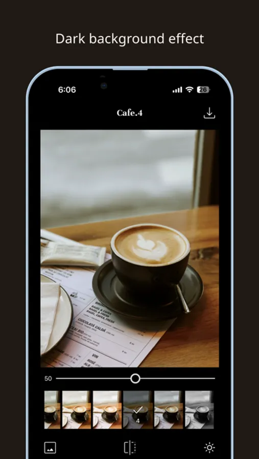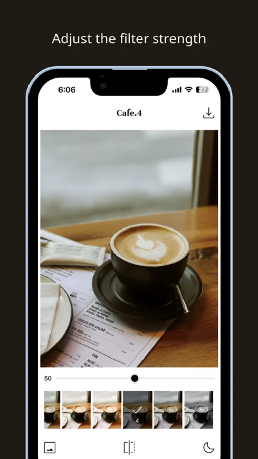Calibrate your photos with 6 filters that match your photos at the cafe photos!