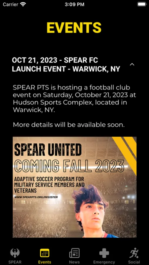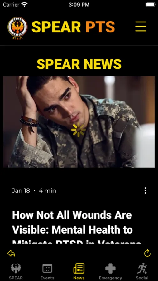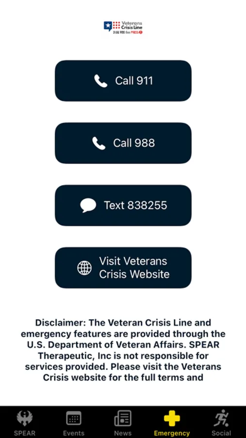 The SPEAR Therapeutic application is an integrated way for its members to register, donate, and keep up to date with organizational events and news. An additional emergency feature has been added to assist veterans and service members with obtaining assistance in the event of an emergency or crisis.