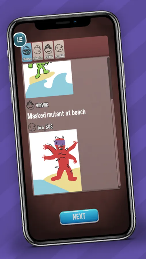Anyone can easily create and join a server in seconds. Knowing that for party games most of the people just want to hop in the app and start playing, Drawing Phone doesn't require any logging in or configuring to start playing, you can just hop in create a match and start it right away ( Although we recommend at least changing your nickname )