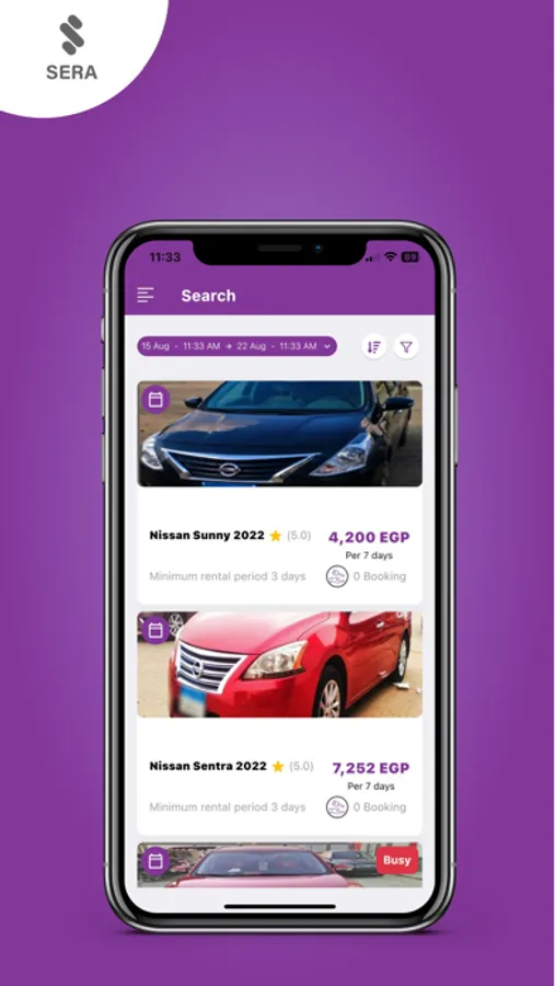 Sera is the leading car rental company in Egypt .We provide a private experience that is safe and available to all car owners .We also offer a unique and distinct experience for renters of modern cars insured with comprehensive insurance .With our sales team, we will help you choose the perfect vehicle for you.