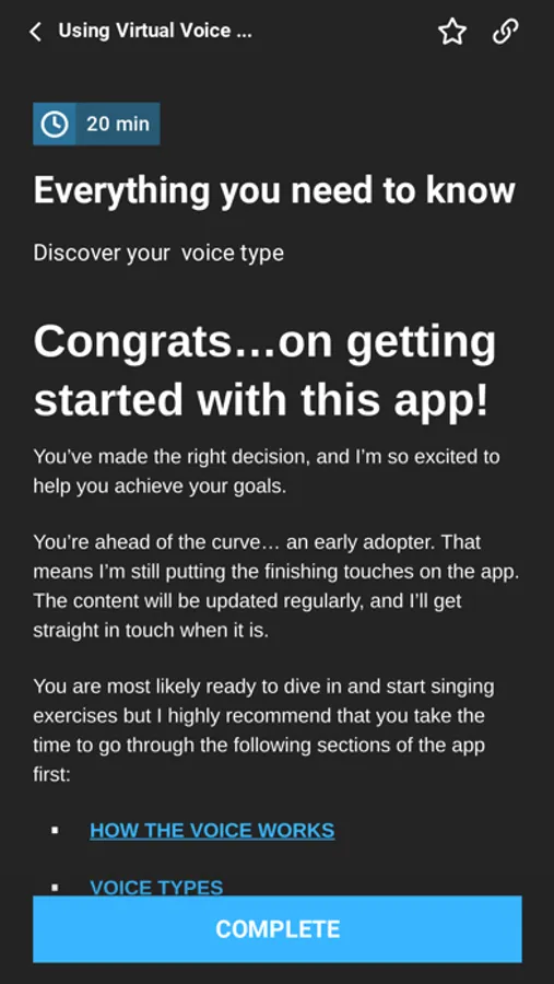 This app was designed to provide singers and want-to-be singers with the tools to take your voice to the next level. Whether you are a total beginner or a professional singer there is a next step for you.
