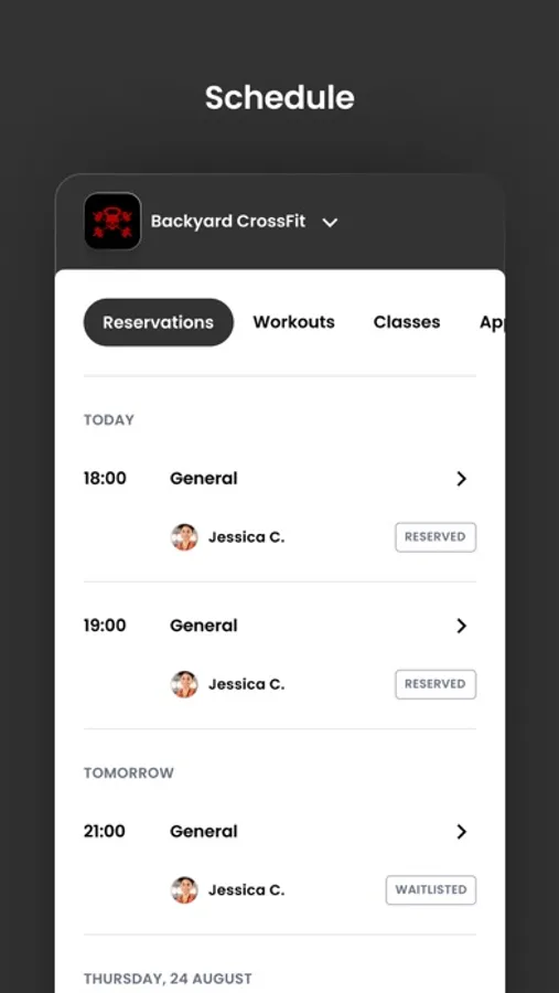 For members of Backyard CrossFit to reserve their place in a class, sign up for gym events, and general account management like updating headshots and credit card on file.
