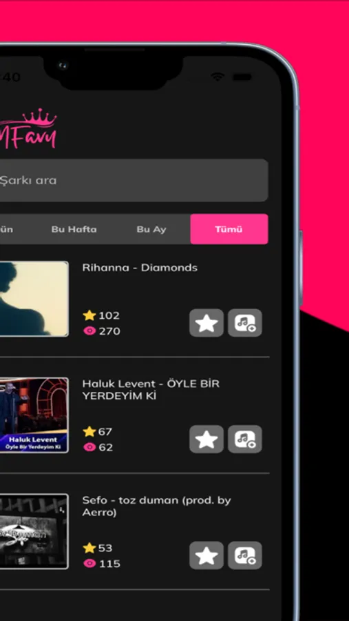 Lider Tablolarını Keşfet: Günlük, haftalık ve aylık olarak hangi şarkıların popüler olduğunu ve diğer kullanıcıların hangi şarkılara ne kadar puan verdiğini görebilirsin. Kimin zirvede olduğunu öğren!