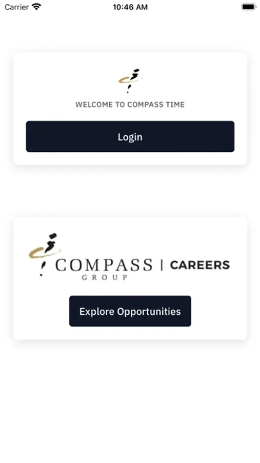 Compass Time app provides access to company job opportunities and company culture info. It's also a time and attendance application that allows users to clock in and out of work, view their timesheets, and request time off.