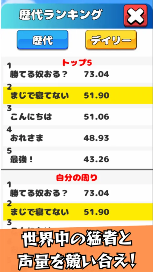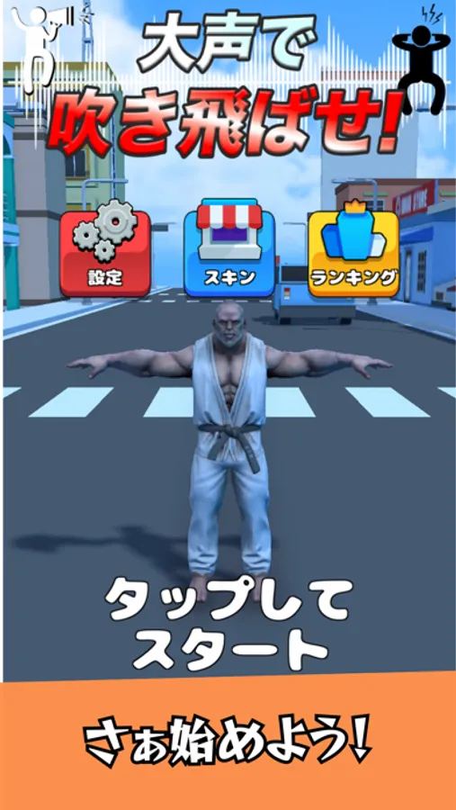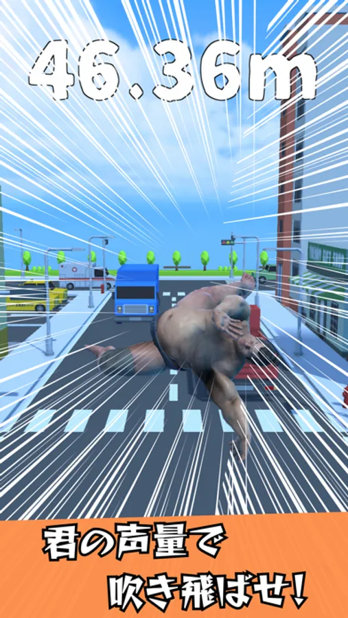 このゲームはスマホに向かって大声で叫び、キャラクターを吹き飛ばすゲームです。