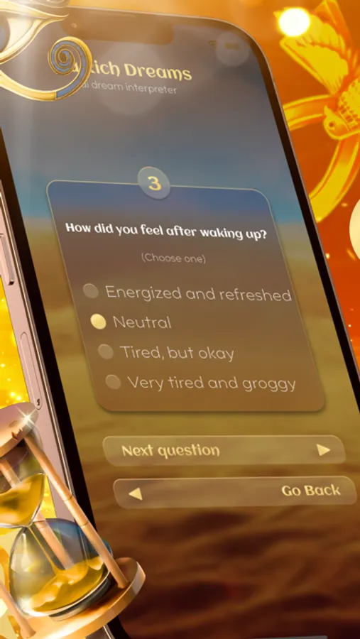 Discover the secrets hidden within your dreams with Ra Rich Dreams, a one-of-a-kind dream interpretation app driven by artificial intelligence. With a simple post-dream questionnaire and insights about what you dreamed, our AI deciphers various signs, emotions, and meanings behind your dreams, allowing you to keep a personal dream journal. But that's not all—our app also features a sleep calculator. Just input when you want to wake up or fall asleep, and Ra Rich Dreams will suggest optimal sleep times for a refreshed you.