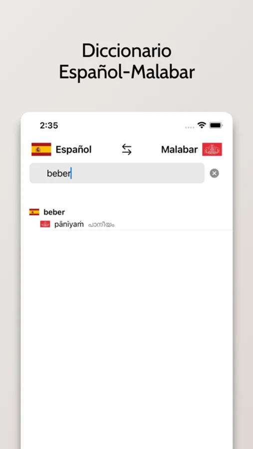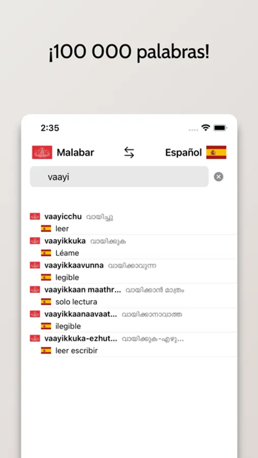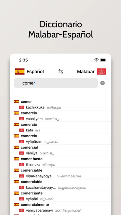 - Posibilidad de buscar a partir de palabras en Español o Malabar