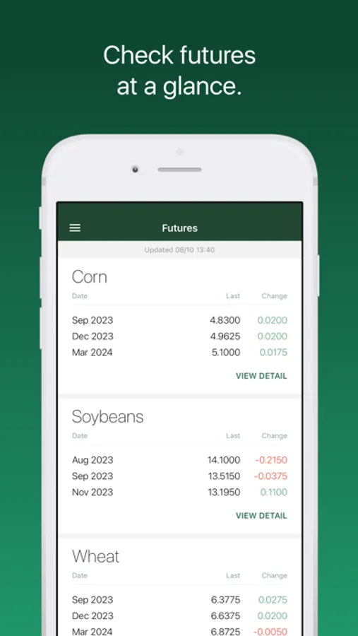 Futures: See Grains, Feed, Livestock, and Ethanol futures listed in order of your preference