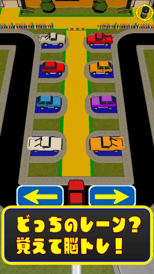This game is a 3D parking lot guide memory training game (free) where you remember people getting out of cars and guide the next car to the departing parking spot. Choose the correct lane to guide the next car and aim to clear each stage! Stage completion relies on your memory, providing brain training to sharpen your memory skills. When you give correct guidance, you receive expressions of gratitude like "Thank you."