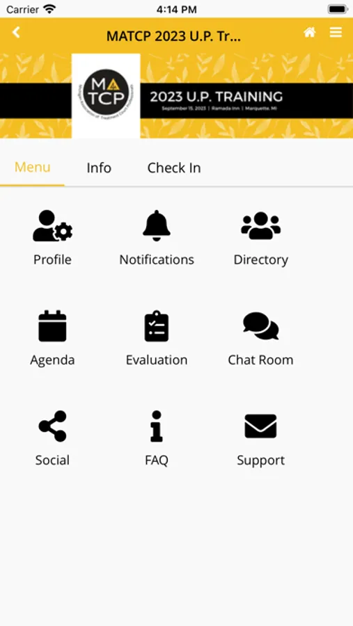 This is an event app for MATCP Events, including the MATCP 2023 U.P. Training. Access the Events listing; view the events; visit an event; view the agenda; connect with attendees; complete evaluations; receive updates and notifications during the event.