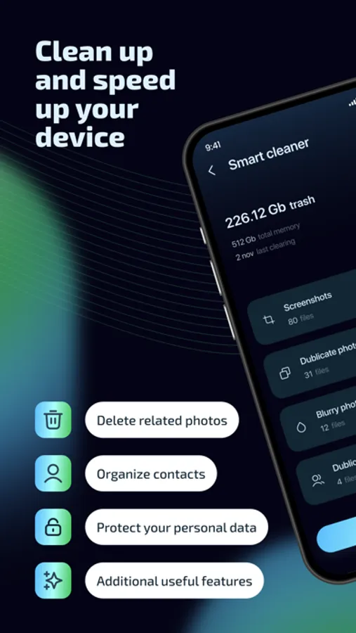 - Space Saver: Easily free up storage by identifying and removing unwanted files.