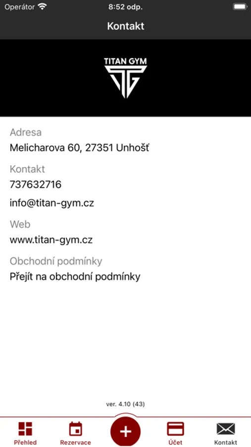 Aplikace pro klienty Titan Gymu. V mobilní aplikaci si můžeš koupit permanentku nebo členství, dobít si depozit nebo rezervovat lekci.