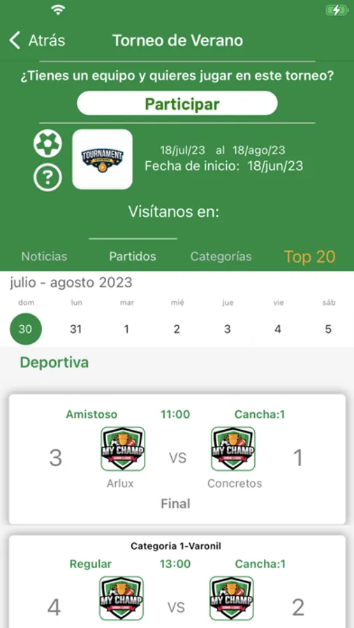 Aplicación dedicada a la muestra de información sobre los partidos locales, así como poder administrar equipos y torneos con muestreo de estadísticas en tiempo real.