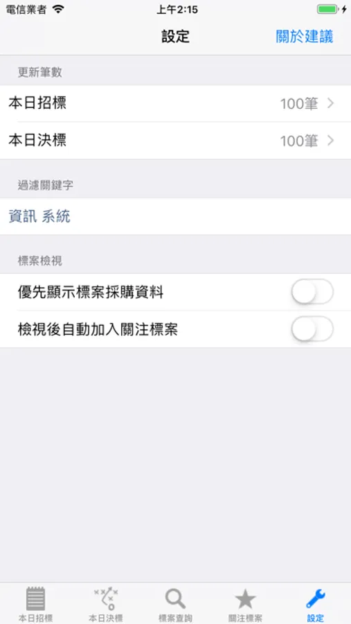2.可以依照設定的關鍵字進行過濾,快速找到合適的標案