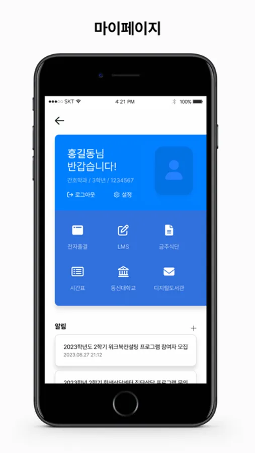 - 실시간 학사 이수 정보 및 성적열람, 휴·보강 소식 등 제공
