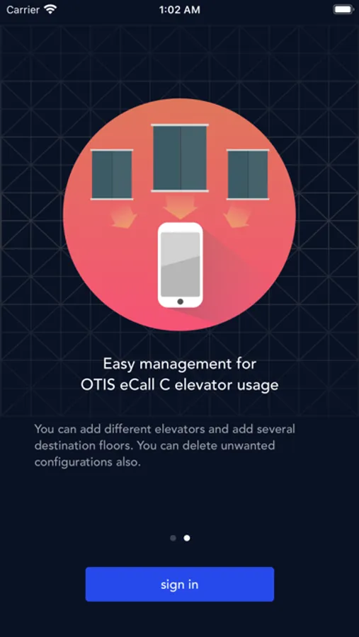 OTIS eCall C can call elevator via Bluetooth. The elevator would be summoned when you trigger "up & down" button in app, and then you can register the destination floor when you get into the cabin via app. Before calling elevator, you need to add OTIS elevator in the APP in advance, and enable your mobile Bluetooth.