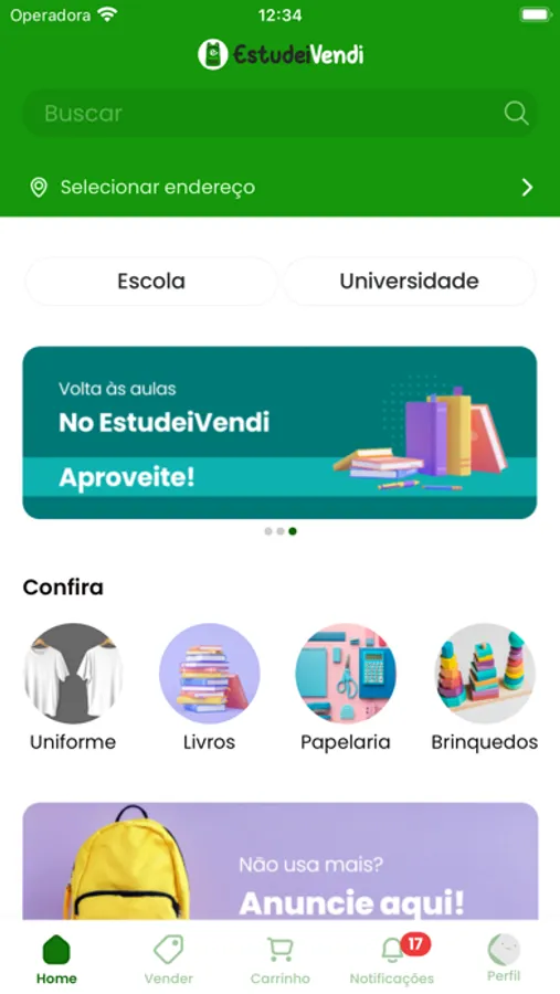 Um aplicativo de marketplace com atuação em produtos voltados a educação como livros, uniformes, mochilas, materiais escolares e brinquedos didáticos.